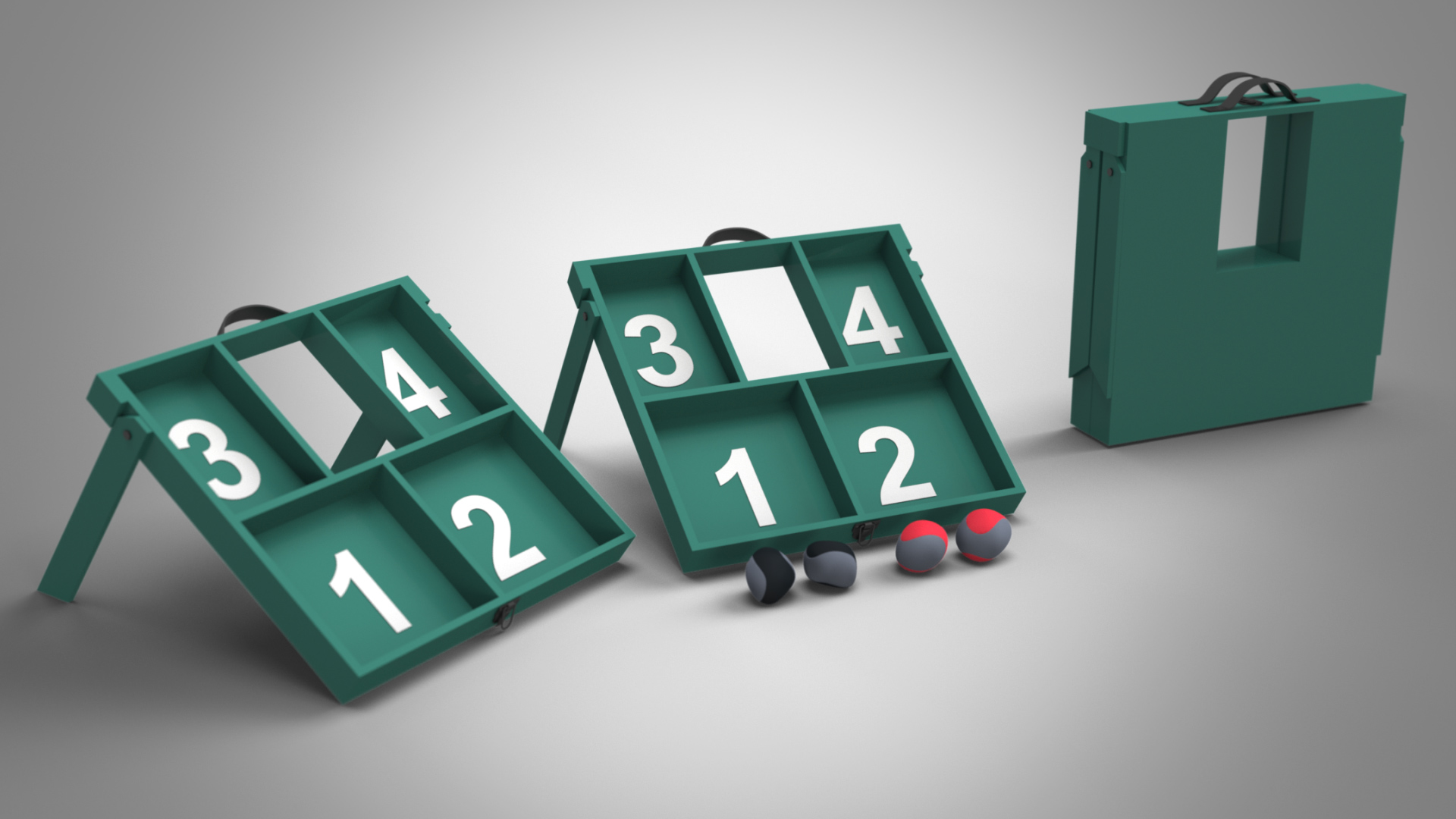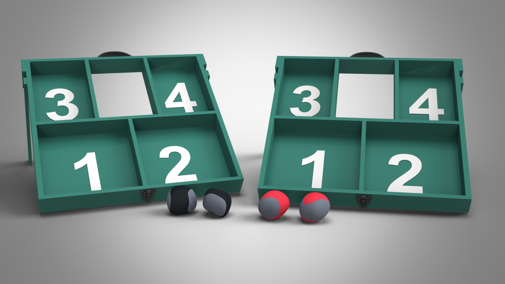 Boards are placed 40 feet apart and teams assemble into a 1-on-1 or 2-on-2 configuration with teammates on opposite sides. Play begins with one side throwing all the bags first, alternating throws. Points are determined by the numbers on the boards with the cut-out section being worth 5 points. Bags must touch the back of the board to count. Scoring happens with each set of throws. If both teams score the same number of points, they cancel each other out. Otherwise, points are added up and the team with the most points goes first throwing back down to their teammate. The first team to 21 points, without going over, wins! If a player goes over, they must go back the number of points they threw to go over. If a player throws first and gets the points needed, their opponent has the chance to throw and cancel the points. If a player scores 21 with the first bag and the other player doesnt tie or cancel with their first throw, the game ends. In the event of a tie, each player gets to throw their set of bags one more time and the team to score the most points wins!