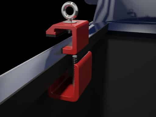 This clever new invention consists of a two part design that does not require any drilling. This sliding clamp system provides multiple tie-down points, and allows for superior hold down strength on any cargo. The use of the Attachable Tie-Down Loops for Trucks allows for quick and easy securing of any object that is transported in a pickup truck bed or utility trailer in a safe manner.