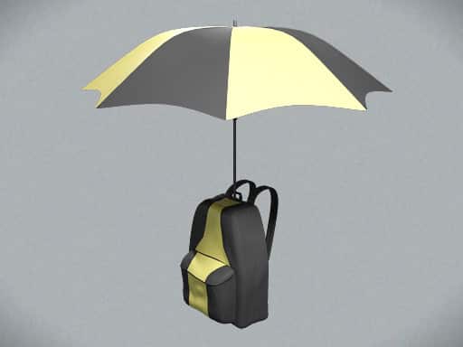 The invention affords users the protection of an umbrella without the necessity of having to hold it during use, leaving their hands free for other tasks.