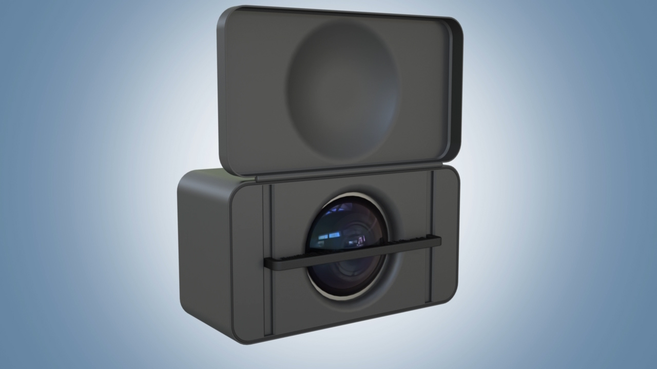 Inventors Brian Esterholt and Charlotte Esterholt of Pinedale, WY have created a movable cover to protect and clean a vehicle's backup camera lens for safe driving in inclement weather.