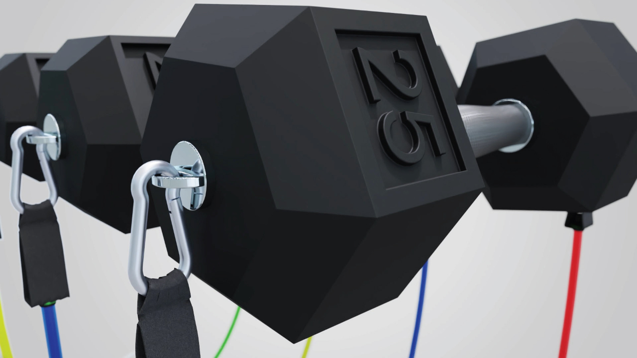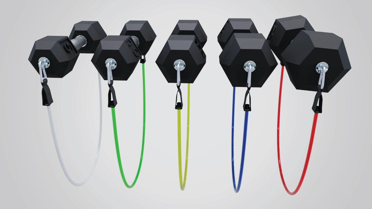 Inventor Maurice Harden of Riverview, FL has created an exercise device which effectively allows you to use exercise resistance bands along with dumbbells. As a kinesiologist working in both rehabilitation and fitness, Maurice was always fascinated with resistance bands and the various types of exercises you can do with them. He would watch people in the gym attaching the bands to machines and barbells. He thought, Why not dumbbells? and started trying it. But then he ran into a few problems. First, the bands would rub the hands or get in the way. Or the bands would bind, causing the hands to bend into uncomfortable positions. The band can also slip off during use and cause injury. He just knew there had to be a way. Band-Bells is his solution.During dumbbell exercises, a user now has added resistance through the entire range of motion. No longer will bands bind against the surface of the barbell or slip off. The user may easily switch out the bands for bands of different resistance or even attach multiple bands at once. The invention adds resistance without adding actual physical weight, making them ideal for use in limited space or while traveling.