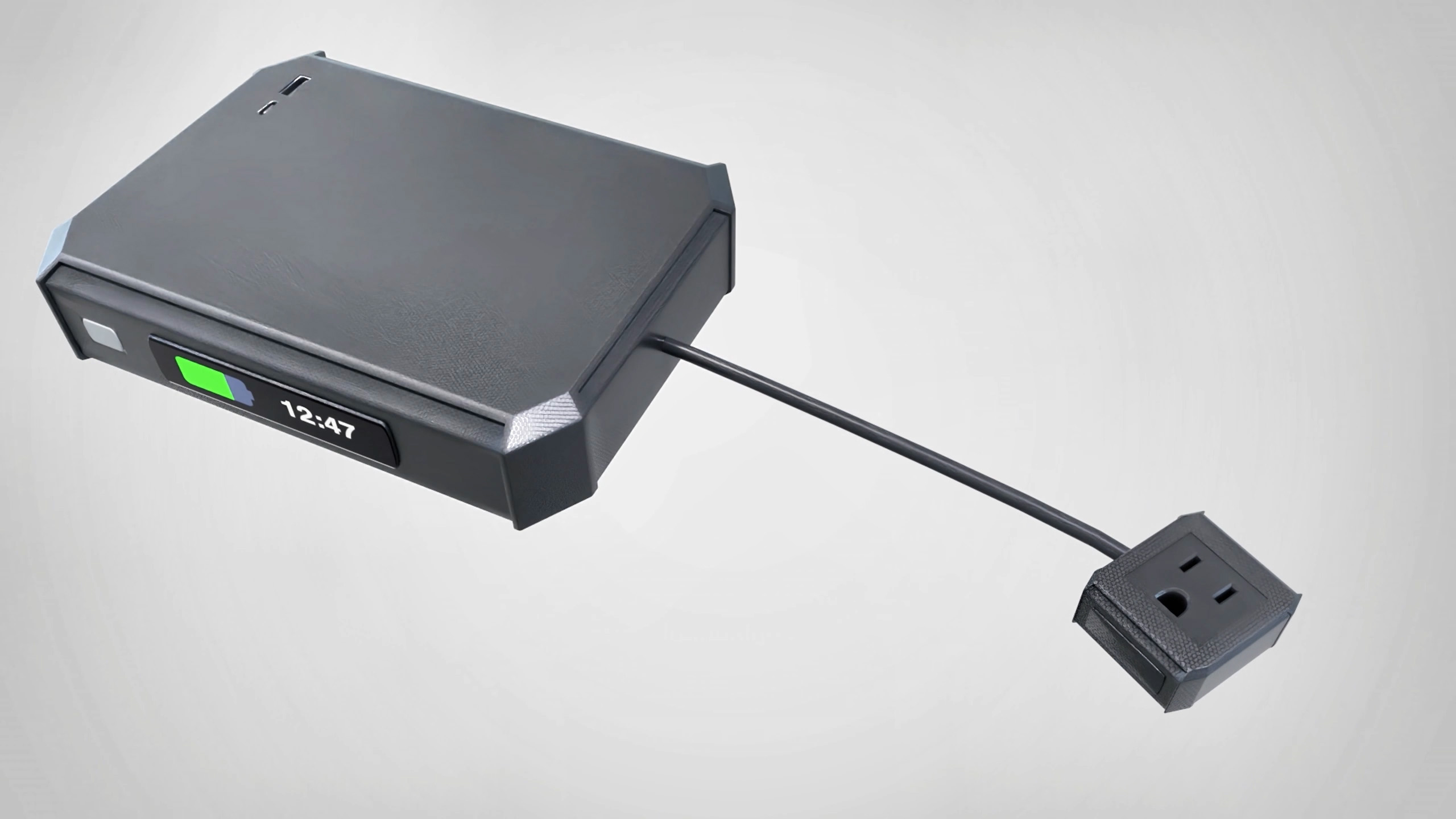 But how does it work? The invention features a compartment for an extension cord and a battery. Just insert batteries or use a built-in lithium battery, set your timer, and power any device. Additionally, a USB port on the outside of the box lets you easily charge phones or other gadgets. This versatile power source is ready for use anytime and anywhere!