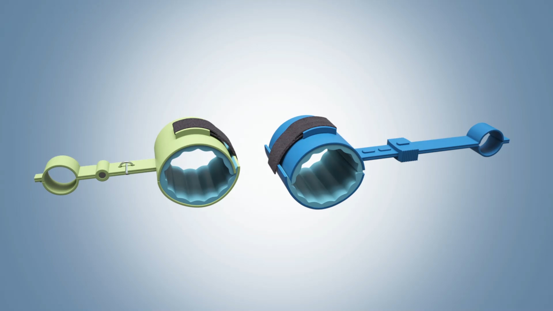 A cushion cuff for restraining patients when necessary.