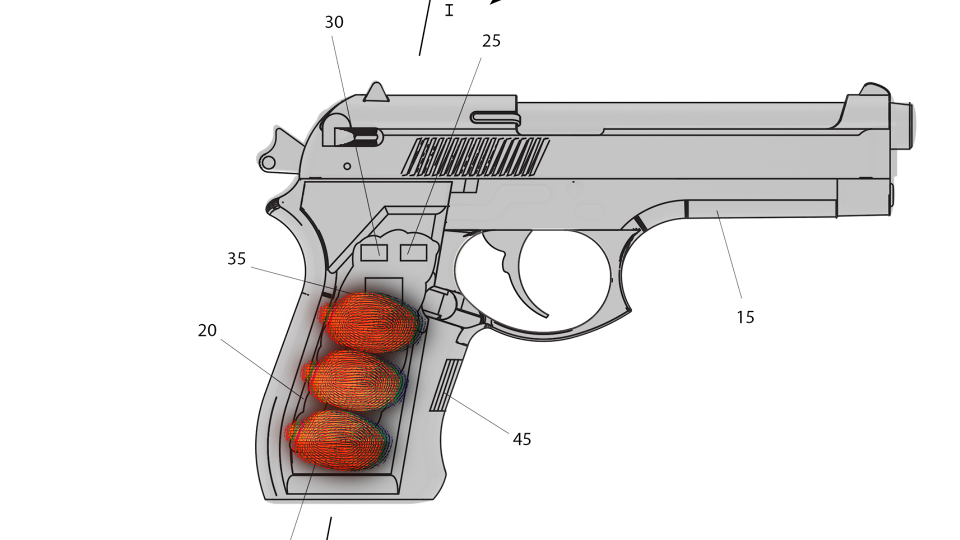 These things considered, Inventor Cannon created the Biometric Safety Lock. When an invalid fingerprint is scanned, the gun will not fire. This will save lives! The scanning device will be located along an interior side edge of the firearm grip. When handled by the appropriate person, however, it can be quickly accessed whenever the handgun is needed.