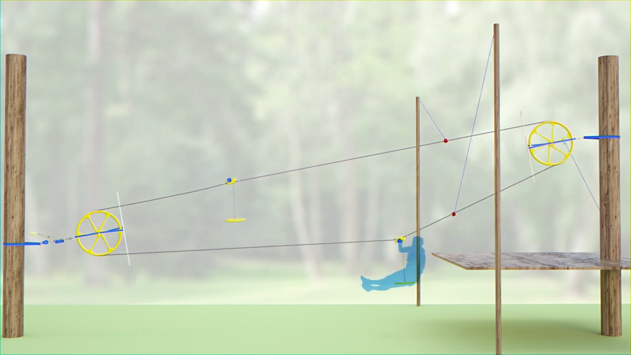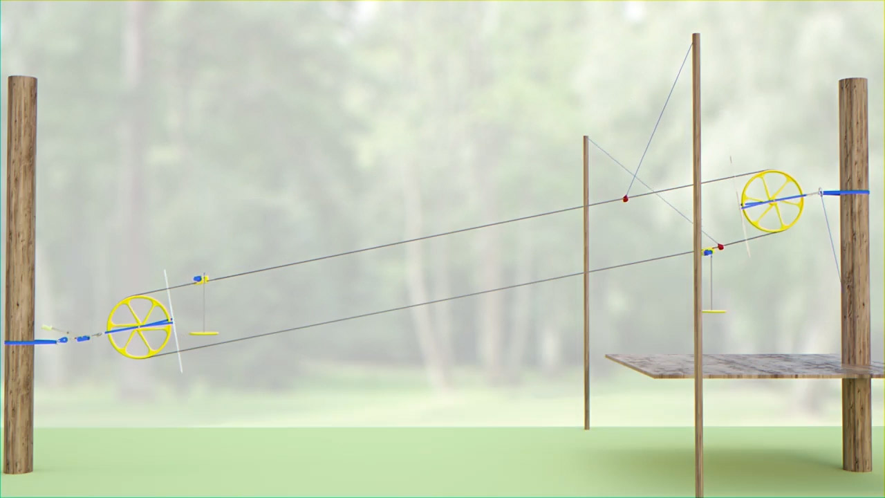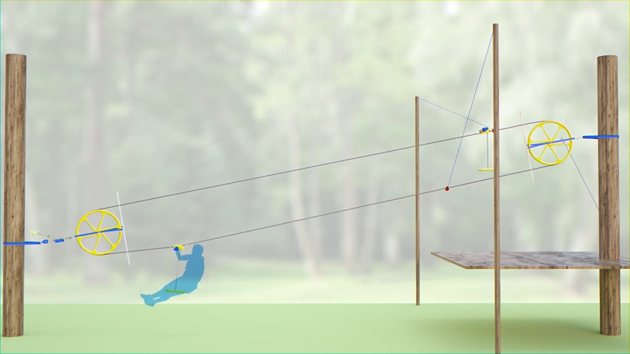 After installing a 250 ft. zip line at his daughters home, Curtis grandson, Jack, approached him with an invention idea. Although the zip line was great fun for everyone, it took ten minutes to pull the trolley back up the fixed wire cable after each ride. This meant the next person would have to wait for their turn on the zip line. Jack took a piece of paper and drew a zip line that had two seats opposite each other on a wire cable loop going through an upper and lower pulley. The wire moved with the seats like a ski lift or clothesline. As a rider went down, the other empty seat was raised back up to the starting point, ready for the next rider. For Christmas, Curtis built Jack a prototype of this idea called the Boomerang Zip Line. They experimented with several pulleys to find ones that worked, finally using bike wheel rims for the upper and lower pulleys. It worked perfectly! There was no interference when the seats passed because the seat going down with the rider hung low and the lighter empty seat going up was on a taut wire far above. Since the seat was always right there for the next rider, the time in between rides was now about forty seconds instead of ten minutes. Thats when they knew they were onto something!