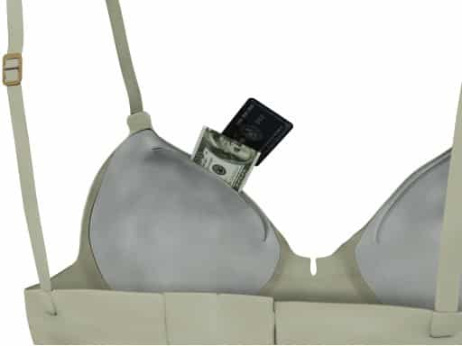 Women often use purses when out in public to carry personal items such as wallets, makeup, checkbooks, grooming aids, and the like. However there are times when they need to travel light, such as when caring for children. Other times women do not want to bring a large purse out for the evening or when attending a dinner or show. It is also a good idea to carry the hard-to-replace valuable items like currency, credit cards, and a drivers license separate from other items where they will not be lost if the purse is stolen. However, the options on where to carry these items are limited for women due to the lack of pockets on typical womens clothes. Inventors Hayes and Melton have created a means by which a woman can carry personal items such as money or credit cards in a safe, discreet manner without the usual risks associated with purses.