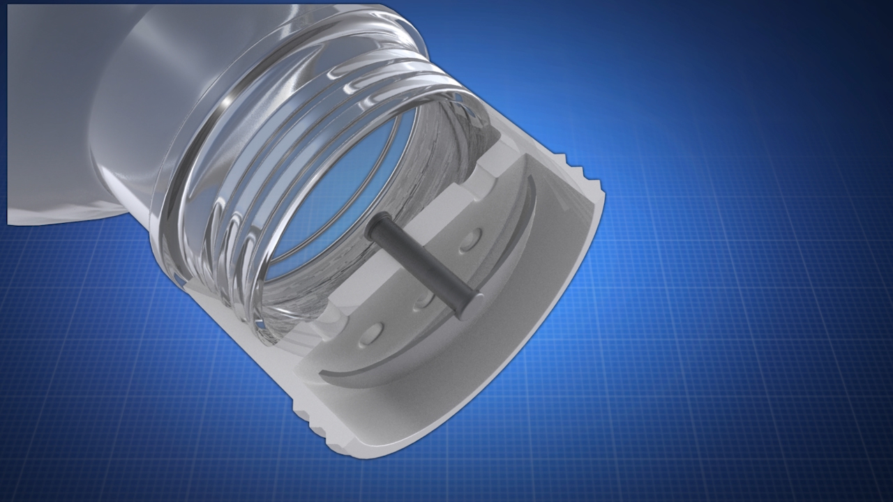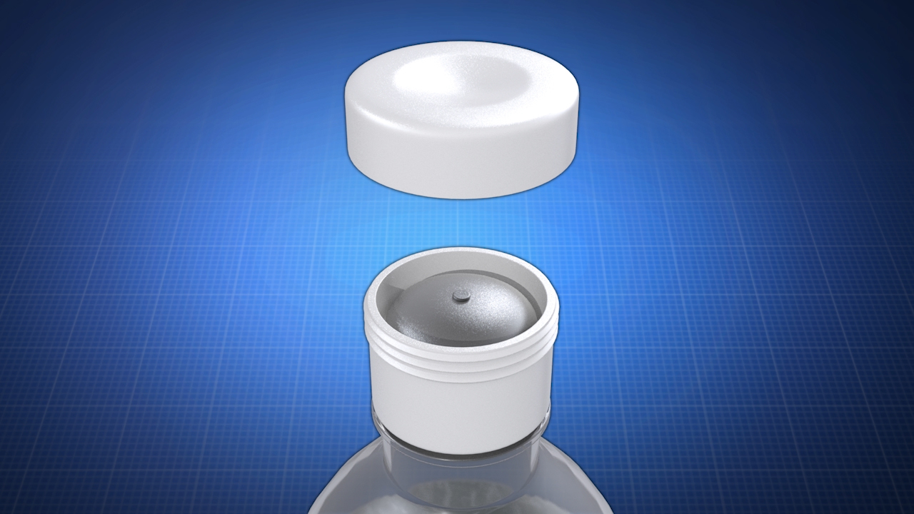 The Cap with Pour Top automatically opens to pour when tilted and automatically closes when pouring is complete.