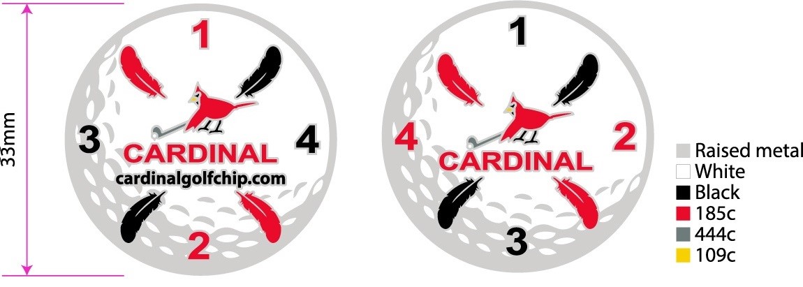 The success of this idea led to the creation of the Cardinal Golf Chip and now its being brought to market! Its the easiest way to determine tee off order. It can also determine playing partners for best ball. Golfers could simply use it as a ball marker for the greens, too. It is easy to manufacture.