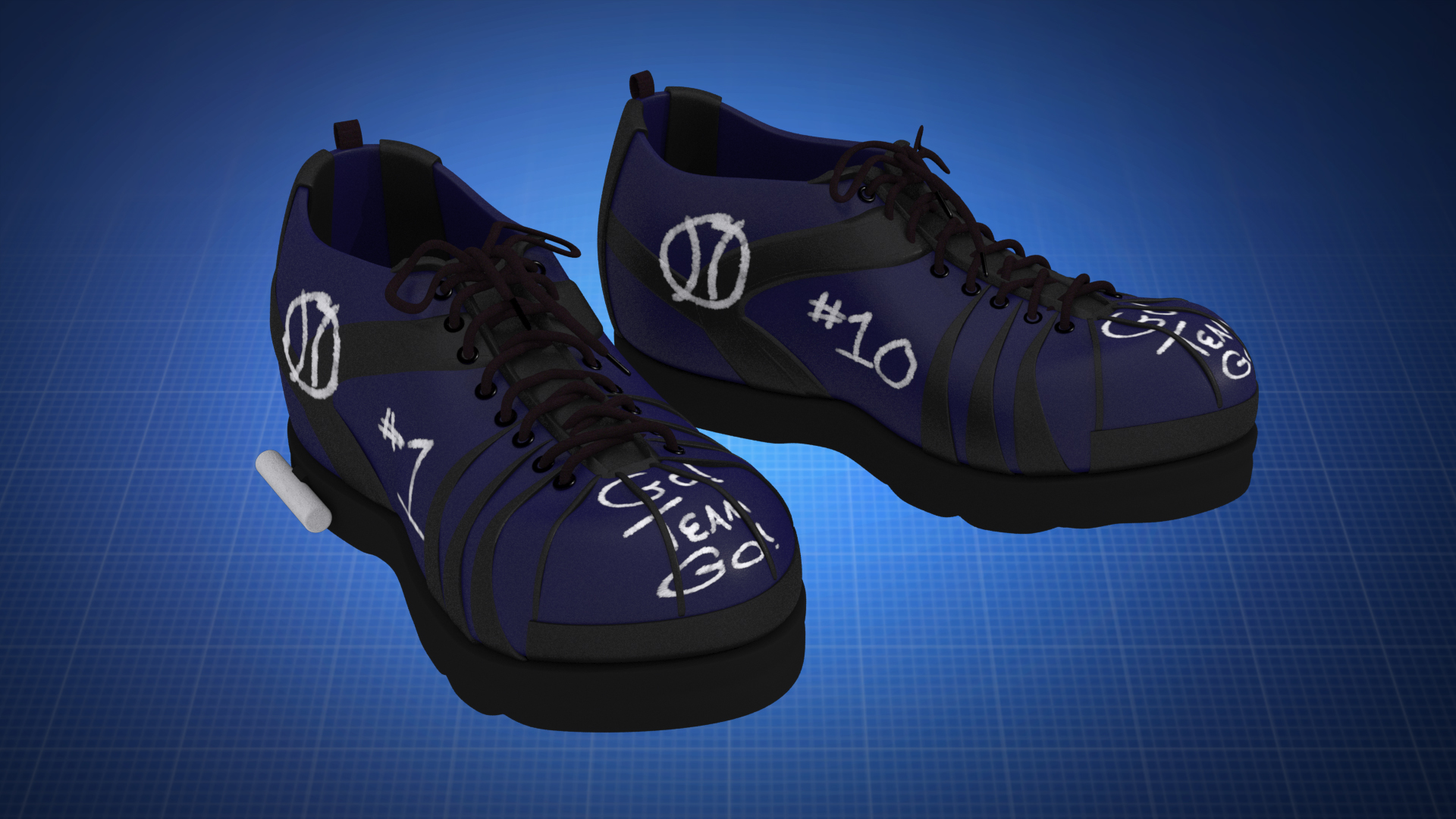 This clever new invention is eye-catching and unique. Shoes can be erased and their chalkboard surface can be used over and over. Chalk is able to be stored within the shoe. If desired, an eraser can be tied to the laces of the shoe. The invention is for use with all kinds of shoes or boots including: athletic shoes, dress shoes, childrens shoes, casual shoes and more!