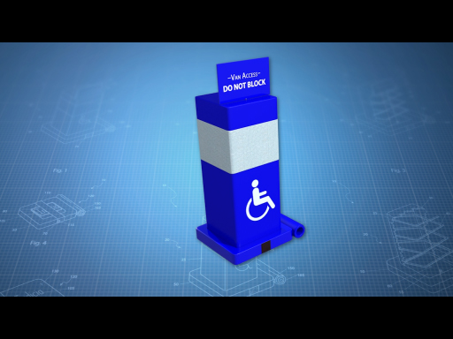 The Collapsible Pylon is a collapsible parking cone to aid in reserving space along a handicapped van for wheelchair and/or ramp access.