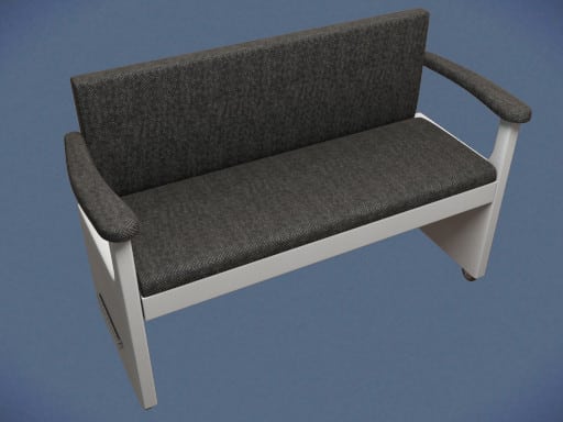 Whenever one works on the computer, oft times you will want to show someone nearby the results found and they have to look over your shoulder standing the entire time. Inventor George designed her desk bench to accommodate two users so one does not have to stand or kneel to view the monitor.