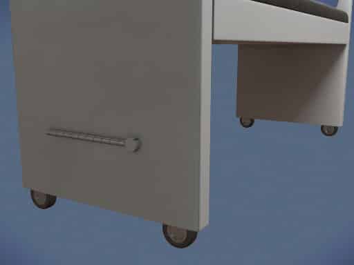 The invention is a computer desk bench that has retractable wheels and can accommodate more than one person at a time.