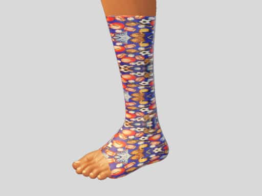 The DecorativeAthletic and Injury Braces is a line of medical braces andbandages with an exterior decorative design. The invention wouldutilize many of the same components as used with the conventionalmedical aids, but would be provided with a decorative exteriorsurface. While the exact configuration of the exterior surface isalmost unlimited, it is envisioned that various themes would beprovided. Such themes include the use of blocks or rattles for useby infants, toy cars or dolls for use by younger children, sportsitems for older children, and simple geometric shapes or patterns foradults. Other themes such as hearts, flames, corporate logos, sportteams, and the like could also be utilized. Such graphicalrepresentations are envisioned to reduce the embarrassment andself-conscious feeling associated with the wearing of a bandage andbrace. It would do this by focusing the attention of a passerby onthe uniqueness of the exterior design rather that the injury ordisability itself. The invention provides an attractive alternativeto the conventional sterile boredom of conventional braces andbandages, and thus helps a user feel better about him or her self.