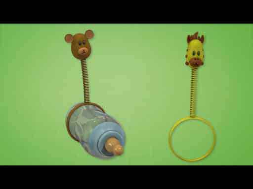 Entertaining children while they are feeding can result in a more calm and attentive manner of feeding the child. A screaming and upset child may not react well to a bottle in their mouth, but a distraction such as a moving animal or some other fun-loving character may make the difference between a calm feeding time and a stressful one. Inventors Egan-Wyer have invented a simple novelty item that was created out of necessity. Proven to work on their three children, the device is too cute to resist for both baby and consumer.