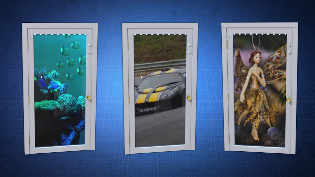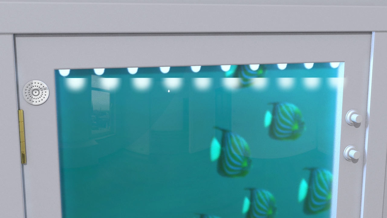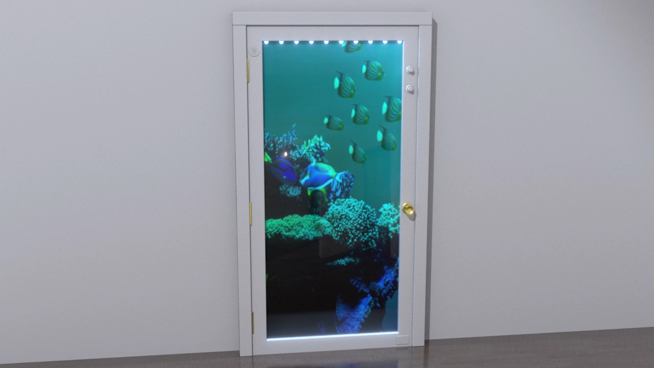 This clever new invention features a fun aquatic scene. It is provided with lights and an electronic music box. Other themes such as childrens toys, Disney characters, racing cars, and more are possible. It is made of Plexiglas and is easy to manufacture. The Decorative Curio Door lets consumers decorate a normally inaccessible area of a home or business with the added benefit of easy and quick user customization, to yield a living space that readily reflects the occupants tastes. Act now!