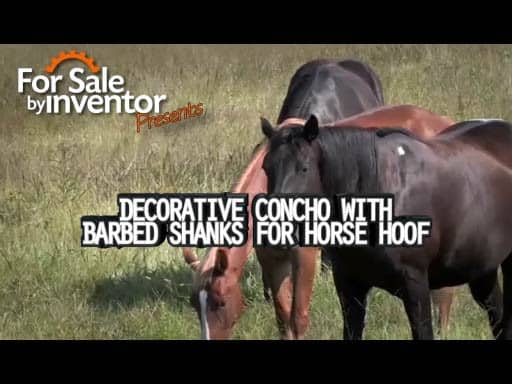This clever new invention has a novel appearance. It will not cause injury. It utilizes rearward facing barbs that are driven into a horses hoof. The base structure is pliable and conforms to the curved surface of each individual hoof. It simply sets into position and a user gently taps with a mallet to apply. The use of the Decorative Concho with Barbed Shanks for Horse Hoof allows for the display of a decorative medallion on a horses hoof, in a manner which is quick, easy, and effective.