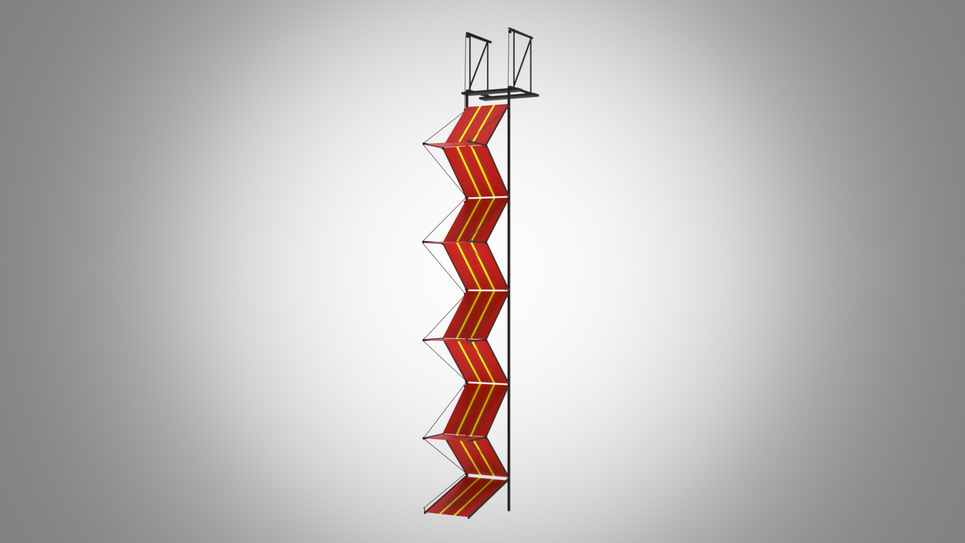 With these issues in mind, he created the Deployable Fire Escape with Quick Slide Exit. Even a person with no mobility in the bottom half of their body will be able to slide down and use their arms to open bands to pass to the next slide and keep going until they are out of the building.
