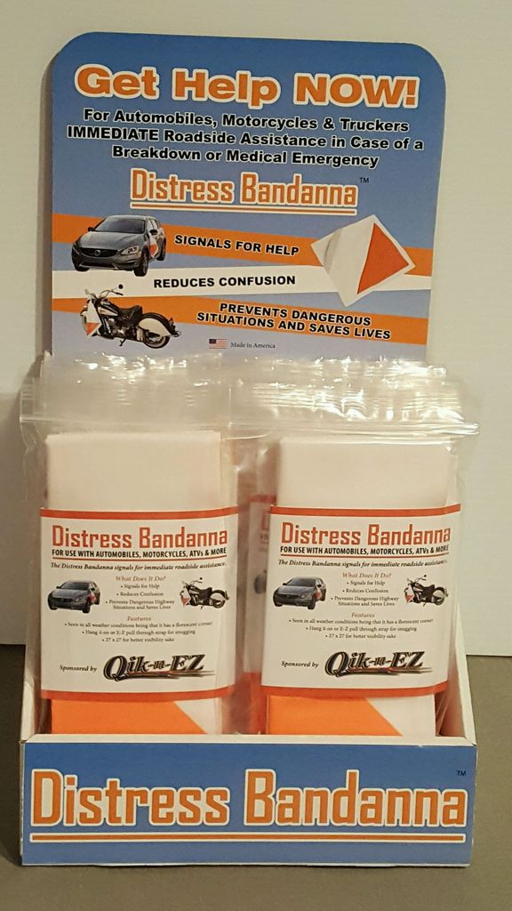 With the Distress Bandanna hanging from one's automobile or motorcycle, passerbys will know without a doubt that the person signalling is in distress and needs help. For example, when a vehicle pulls off the side of the interstate, others don't know if it's for a non-emergency or if the person needs help. It can be extremely dangerous to pull off the side of the road to assist someone, only to find out the person isn't in trouble. The invention provides a means for a clear signal of distress that eliminates any doubt.