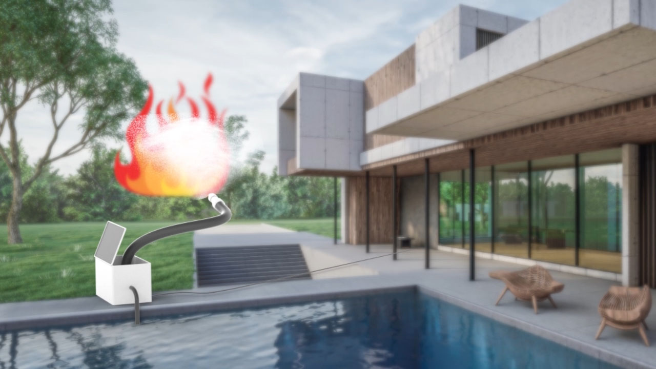 Dulais noticed that many of the homes prone to wildfires had swimming pools. He began thinking of a way to use this existing water supply to fight an encroaching fire more effectively, even if a property has to be abandoned and developed Douse My House!