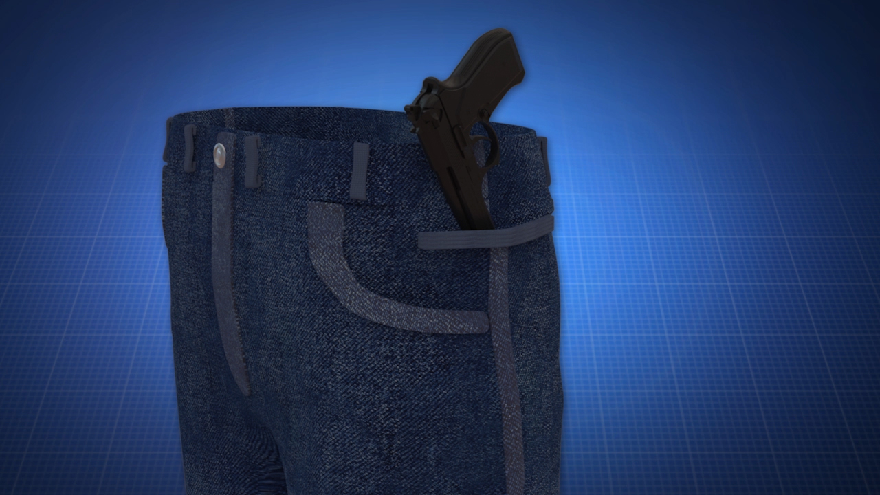 Inventors Dale and Carrie Garner of Yelm, WA have created a pair of pants with a special integrated side pocket for carrying a pistol. Now users will be able to carry a handgun without the bulkiness and visibility of a conventional holster!