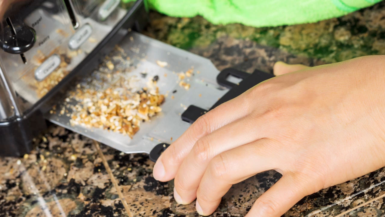 The invention features a full-size tray that covers the entire bottom of the toaster to catch all crumbs. No longer will you have to shake, knock around, or turn the toaster upside down in an attempt to remove the crumbs that have collected. After toasting, you will simply remove the tray, empty it in the garbage, and slide it back into place. Cleaning your toaster has never been quicker - or more thorough!
