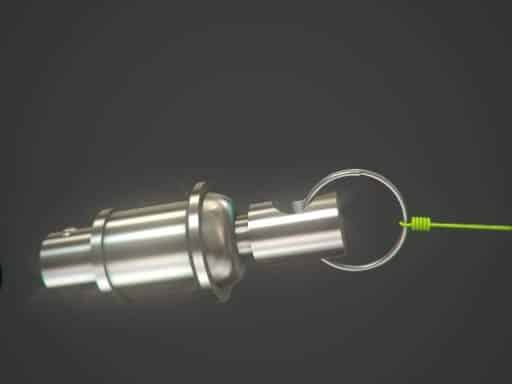 The invention is a quick release system that allows rapid interchanging of fishing lures on a fishing line.