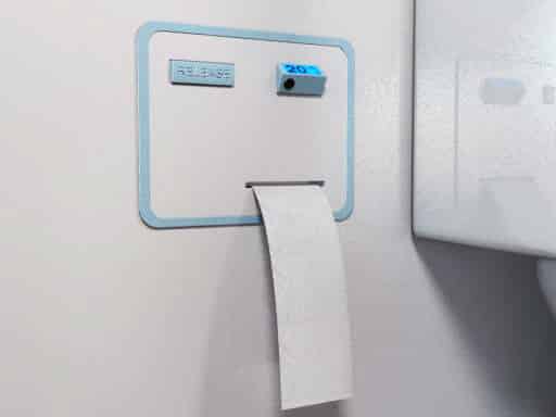 While no one will question the utility of a conventional toilet paper dispenser, it does have several drawbacks. First, its freewheeling design often allows more toilet paper to be dispensed than is actually needed, especially by children. This causes the toilet paper to be wasted. Second, the elderly or disabled may suffer from reduced dexterity, thus prohibiting them from unrolling the paper. Finally, its low-tech design is lacking, especially among those who have the latest high-tech gadgets and gear. Inventor Holowaty has created a means by which toilet paper can be dispensed in an automatic and controlled manner.