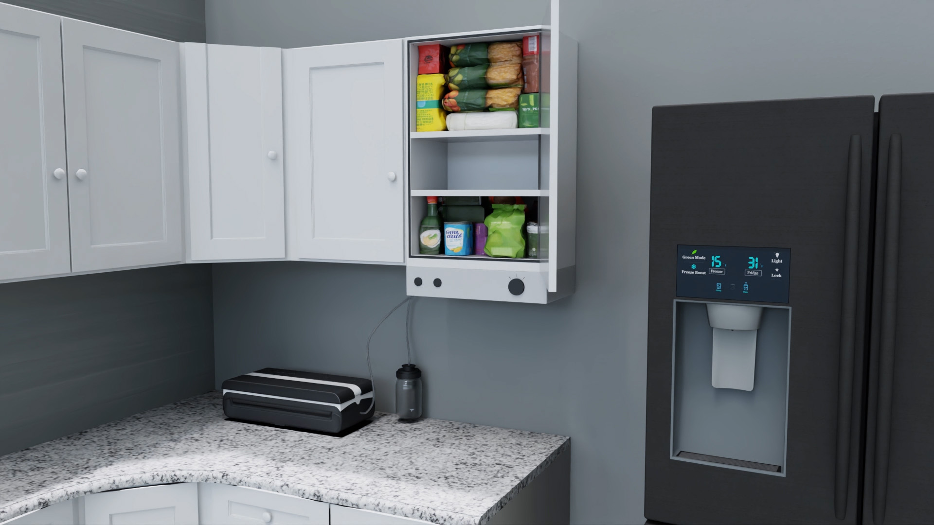 Inventor Guy Leinbach of Hudson, FL has created a vacuum-sealing cabinet designed to integrate with kitchen cabinetry to create a streamlined way of vacuum sealing food items. Preserving food has always been a challenge. Exposure to air causes spoilage, staleness, and a loss of flavor and nutrients. What really is the best solution? Traditional storage containers trap air inside, disposable vacuum bags create unnecessary hassle and waste, and bulky appliances take up valuable kitchen space. Guy just knew there had to be a better way.In the humid climate of Florida, he constantly struggled to keep his spices fresh. While bags and containers offered a solution, the repeated effort of sealing and unsealing them was undeniably an aggravation. He imagined how much simpler and more enjoyable cooking could be if fresh, ready-to-use spices were always within reach. It was then that he was inspired to develop EverFresh Cabinets!But how do they work? At first glance, they may look like standard kitchen cabinets, but these units feature advanced vacuum technology that creates an airtight seal when closed. Equipped with a vacuum pump, control circuits, and valve system, they make vacuum storage effortless. Just press a button to seal or release. With connections for vacuum jars and bags, they offer a lot of options for the home cook. Keep your dry goods fresher, reduce waste and spoilage, and save money with EverFresh Cabinets! Ready to learn more? Be the first to contact us NOW for additional information or for manufacturing, retail, wholesale, distribution, or licensing opportunities!