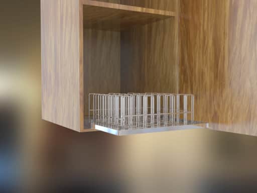 A major storage mechanism found in the home is the kitchen cabinet. These cabinets are used to store dinnerware such as bowls and plates in a stacked format. Additionally, they are used to store cookware such as pots, pans, and lids as well. Unfortunately, this stacked arrangement often means that several items must be removed before the user can get to the item he or she needs. This is not only a time-consuming process, but also exposes other pieces of dinnerware or cookware to possible damage from chipping or even breaking. Inventor Palmer has created a means by which desired dinnerware and cookware items can be easily removed from a kitchen cabinet, without impacting other items, and without exposing them to possible chipping or damage.
