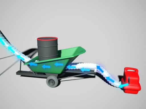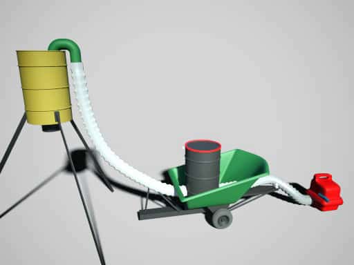Elevated deer feeders are one of the most common methods for attracting deer and other wildlife. These feeders can be very effective, but the process of refilling them is time consuming and potentially hazardous. The inventors of the Filling Device for Deer Feeders created the invention in order to help streamline the refilling process. This invention incorporates a gas-powered air blower and a 55-gallon drum for feed in order to make the refill process quick and effortless.