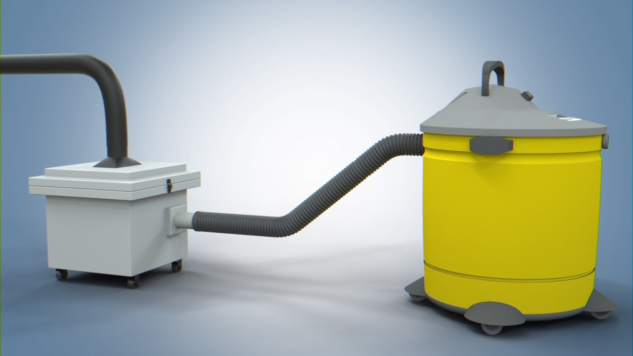His invention offers high performance filtration without the necessity of frequent filter maintenance. A user will simply turn on a Shop-Vac to draw dust particles or fumes through the normal hose into the shop vacuum interior and then out the exhaust of the Shop-Vac. An exhaust hose is routed from the exhaust port of the Shop-Vac to the intake portion of the invention. The invention then does the filtering that goes out through the exhaust. The invention can also be used inline with a larger dust collector unit, or fume extractor, which is used as an air draw source, so you contain the contaminates.