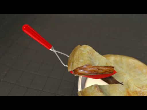 The invention gets every morsel of pie out of the pan without destroying the surrounding pieces. The flexible, pointed head bends around the edges of the pie pan lifting a single piece of pie completely and cleaning out of the pan allowing you to create a beautiful presentation until the last slice.