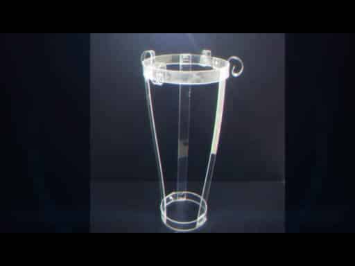 This clever new invention allows countless possibilities for designing an arrangement. Loop features extend outward for receiving tuiling, bows, or other decorative elements. It can serve as a great center piece or gift basket. It can hang from a ceiling, stack on top of another, or hold serving pieces. It allows for anyone to be creative. The use of the Frame System for Flower Arrangement allows one numerous ways to display flowers and balloons in a manner which is not only quick, easy, and effective, but fun as well.