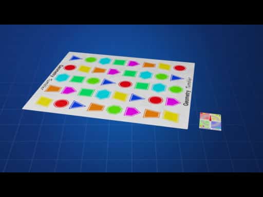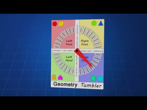A game mat with rows of various geometric shapes is spread out on a flat surface. Players must stand on opposite ends of the mat. A referee, whether it be a teacher or parent, spins a spinner and then calls out the geometric shape and body part that the spinner lands on.Ifthe referee says"right hand, trapezoid" playersmust put their right hand on a trapezoid, or else they are out. The players simultaneously follow the directions given by the referee. Each player must choose a vacant spot on the mat to occupy. For example, if one player already has their right hand on an octagon, then the other players must locate an octagon which is not already occupied. If the spinner lands on quadrilateral, the players may choose any four sided shape to place their hand/foot. If a player occupies the incorrect shape, "tumbles" over,or touches the mat with a body part other than their hand or foot,they are eliminated.