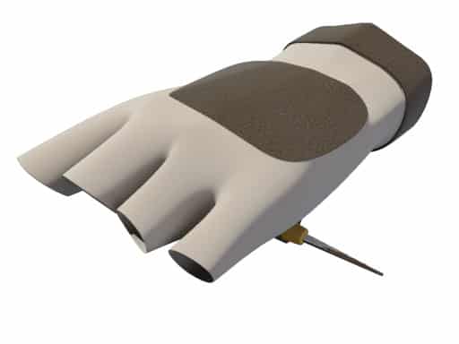 This clever newinvention features a spring loaded pick and an on/off safety switch.  Three fingers are open at the ends fordexterity.  It not only provides warmth& safety, but also comes in multiple glove/mitten versions. The use of the Glove With Retractable Ice Pick, givesusers optimal safety and warmth while enjoying any frozen water activity.