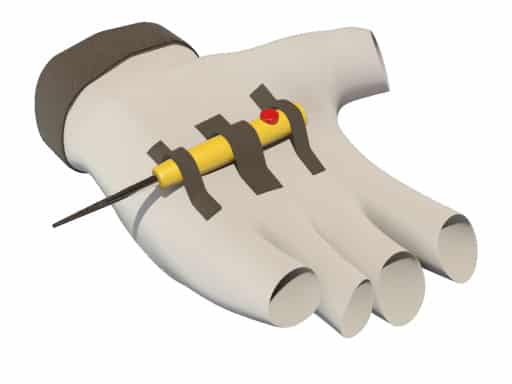 Dealing withcold weather is an obstacle one must overcome when ice fishing.  Gloves can be worn, but they get wet, andrequire constant removal. A second very important issue is safety.  An important tool aiding ones safety is anice pick.  An ice pick can be used topull a person up if he/she would happen to fall through the ice.  However, it is prone to becoming easily lostor dropped due to its small size. Inventor Hoppesrecognized these issues and developed the Glove with Retractable Ice Pick tofulfill this need.