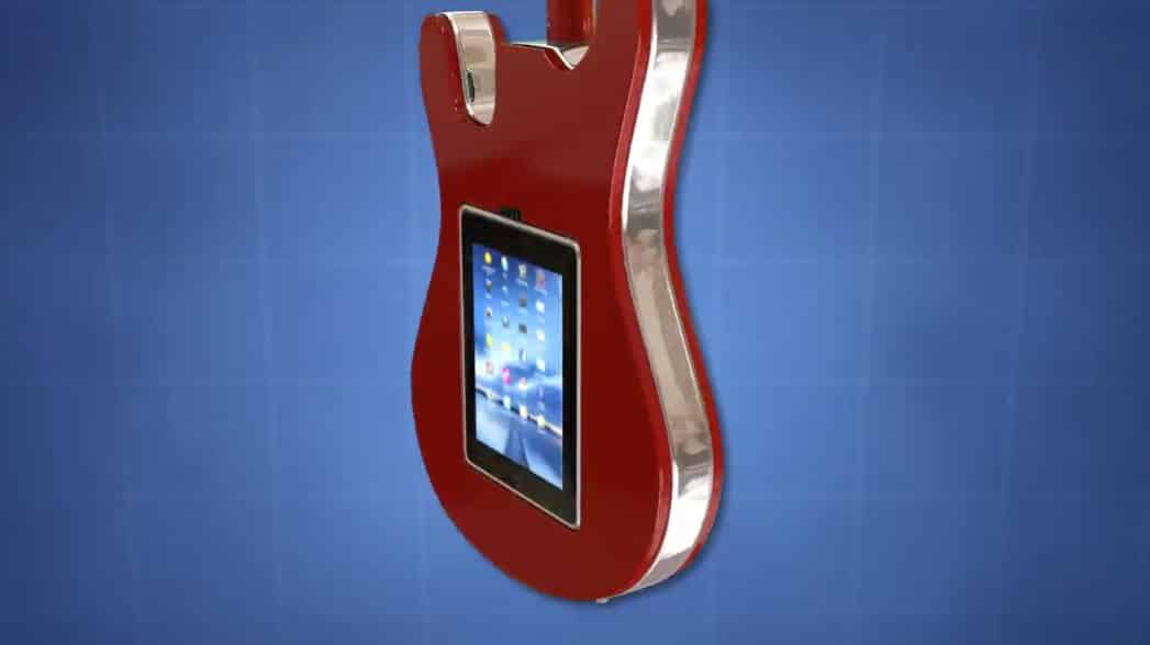 Portable electronic devices, such as tablet computers, are rapidly changing the way that society performs many tasks. Tablet computers along with wireless Internet access provide a wealth of information anywhere that a user can find a connection. An area where tablet computers provide a variety of benefits is the area of music. Tablet computers are able to play music saved on the device or streamed through the Internet, can load sheet music for a musicians reference, and are also capable of connecting with certain instruments in order to capture or modify output from the instrument. One problem with using a tablet computer with an instrument is securing the tablet computer. Often times, a musician will have to place the tablet computer in a location that is awkward to access or unsecure for the computer. Inventor Rudes has created a guitar accessory adapted to connect to and secure a portable electronic device.