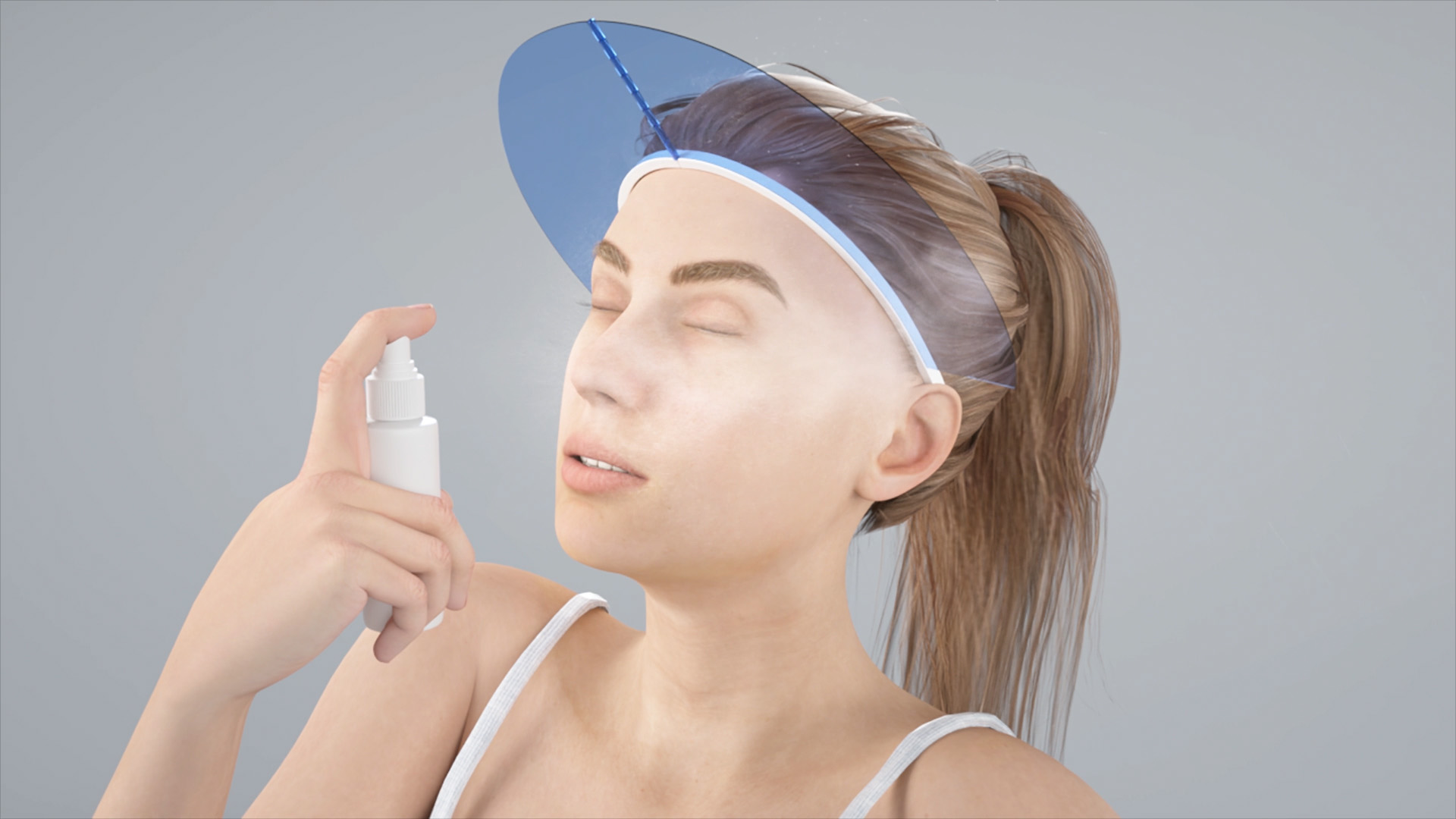 Inventor Kasey Cramer of MI has created a shield that rests on the head like a headband to protect the hair from makeup primer, setting spray, sunscreen, self-tanner, and more!