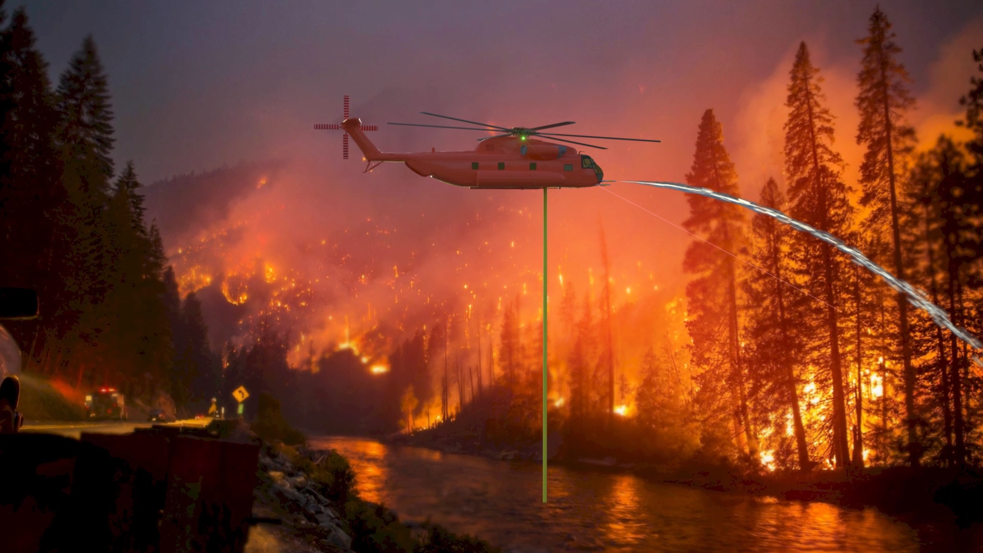 While planes and helicopters do carry water so fires can be fought from the air, current methods are far from perfect. Perhaps the biggest shortcoming is the amount of travel time necessary from the water pickup point to the fire itself. Up to an hour of travel time back-and-forth can be required for a water drop that lasts only seconds. While watching coverage of all the recent wildfires, Inventors Richardson knew more had to be done. In turn, they developed the ultimate tool to fight fires: the Helicopter-Mounted Fire Suppression Delivery System!