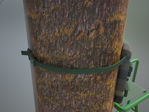 This clever new invention adapts easily to any tree to increase security and convenience during hunting. It forms a safe and stable anchoring point for the hunter, yet is easily attached and removed. Also, the provided back cushion provides ultimate comfort while hunting. The use of the Hunters' Apron provides tree stand-using hunters a safe and accessible method of storing their supplies.