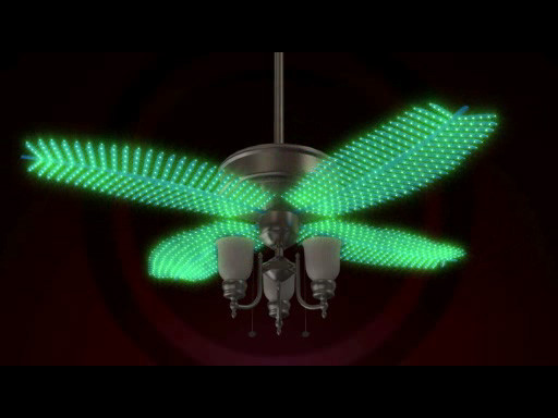 Thisclever new invention features five stem-like blades with multipleleaf-like appendages. These leaves are made up of LEDs, which arewired into the fans central control system. The fan is controlled viaremote control, and when in action displays unique light patterns. The use of the IlluminatedCeiling Fan Blade allowsany indoor or outdoor space to be cooled in an aesthetically pleasingmanner.