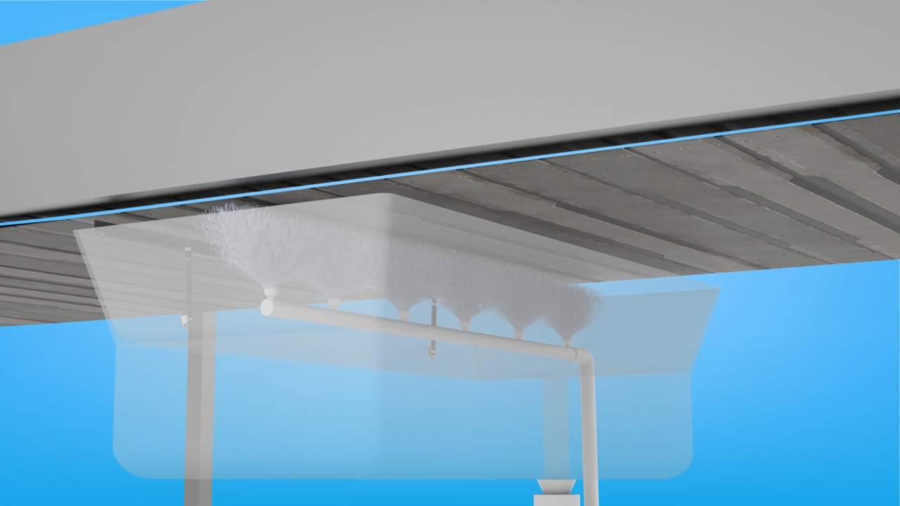 Disinfectant is Pumped from An Open Reservoir and is Released Via Spray Nozzles