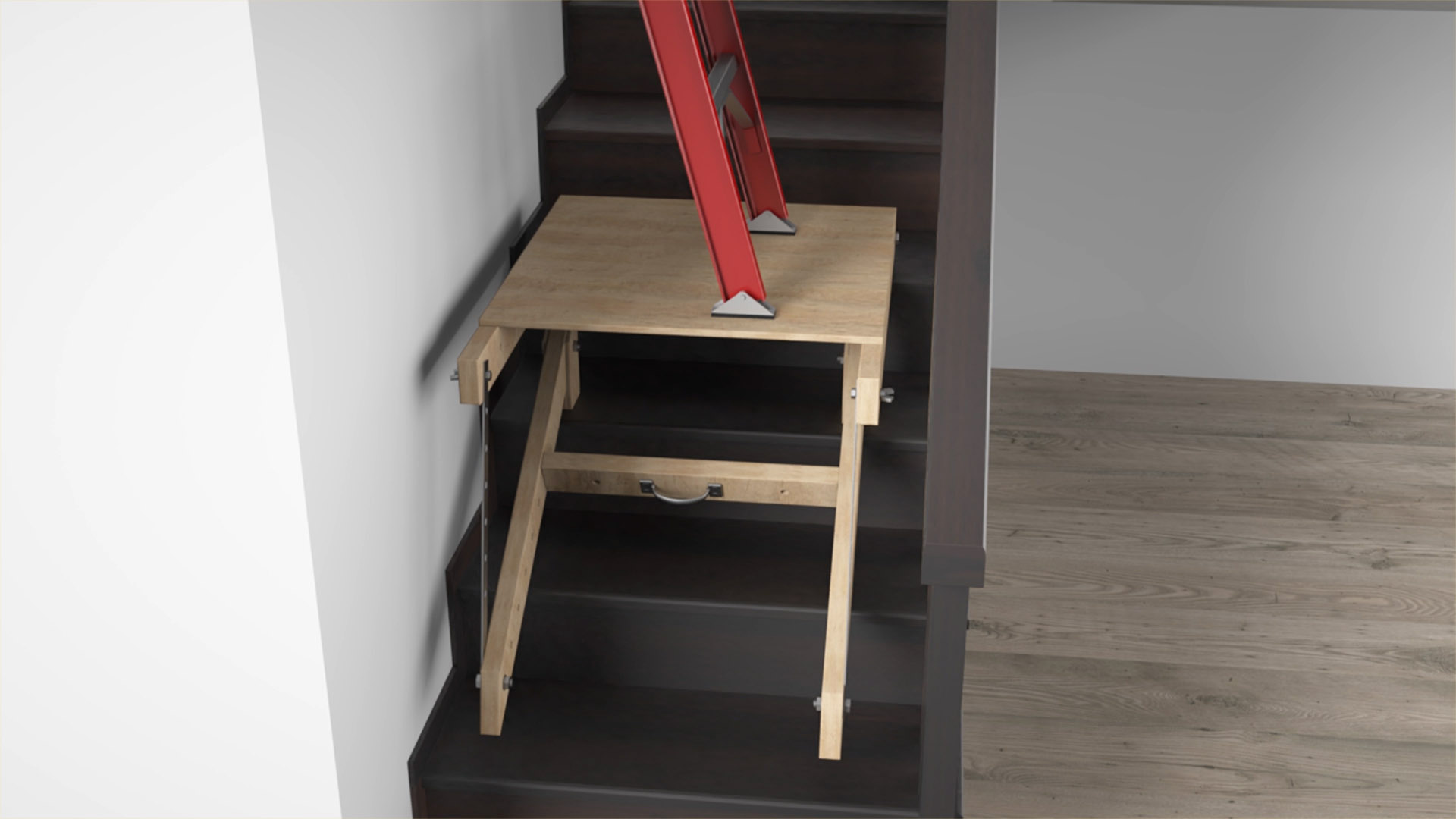 • Four Step Support Legs for Using a Ladder Safely on Stairs