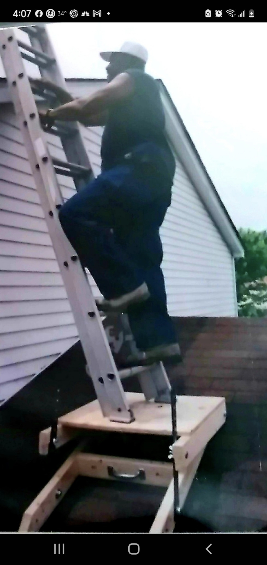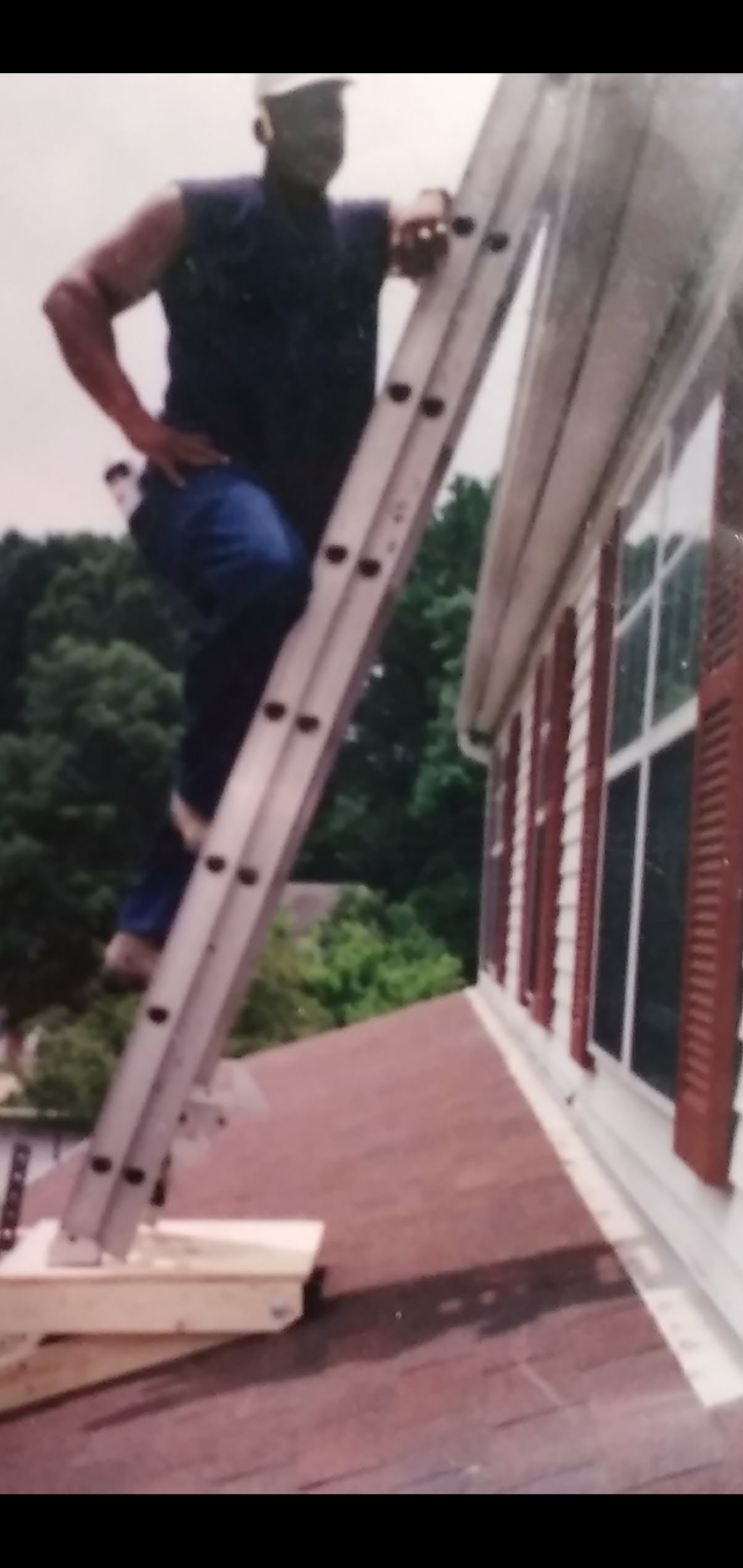 While working on a siding job in Great Falls, VA, Charles came upon an extended area, which was on top of a pitched roof. He needed a way to reach up another 8 feet to access it. In turn, he put a 3-foot level on the ridge of the roof, raised it until it was level, and measured down. When he was satisfied with his measurements, he proceeded to build a platform to those specifications. It worked perfectly! Charles found himself in the same predicament a few months later and had to build it again. This pitch was a little steeper than the one before. That is when it occurred to him that he needed to build one that could adjust to a variety of pitches. Later, he was doing a paint job on a large stairwell and his ladder could only lean in one direction on the steps. He thought about his platform. With a couple more bolts and strips of wood, the problem was no more! Now, his Ladder Sidekick has been further developed and is ready for market!