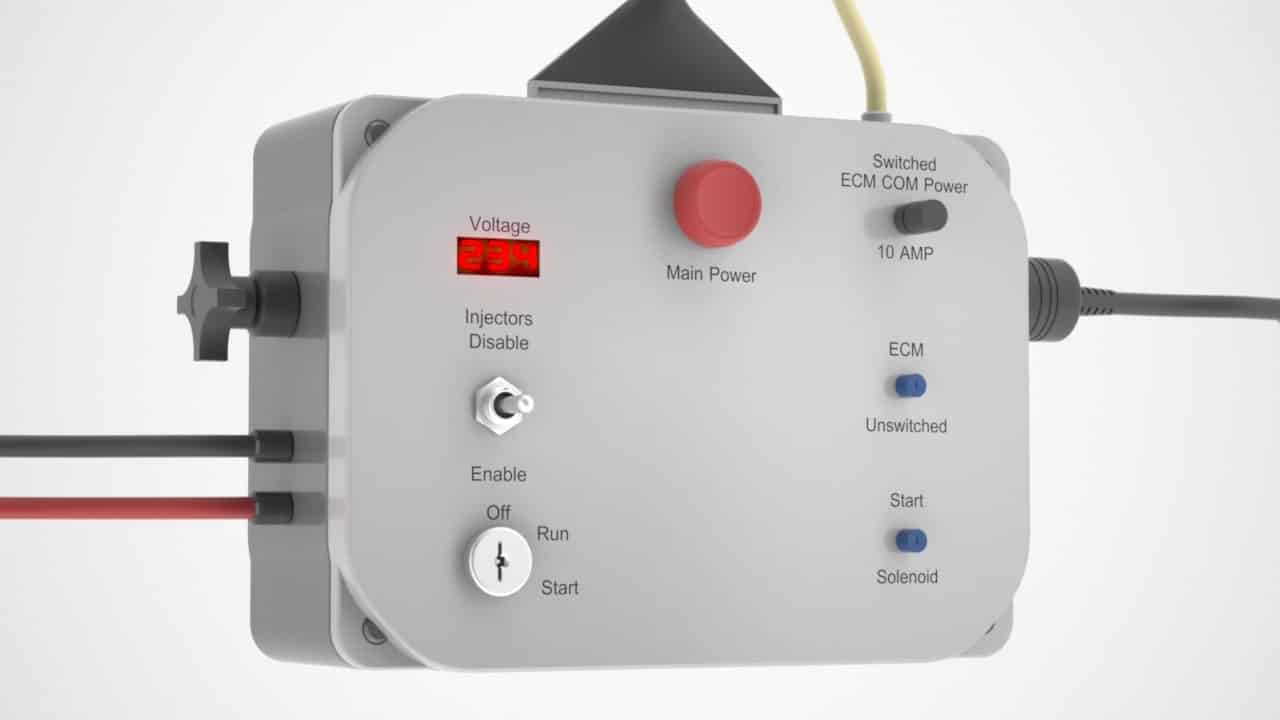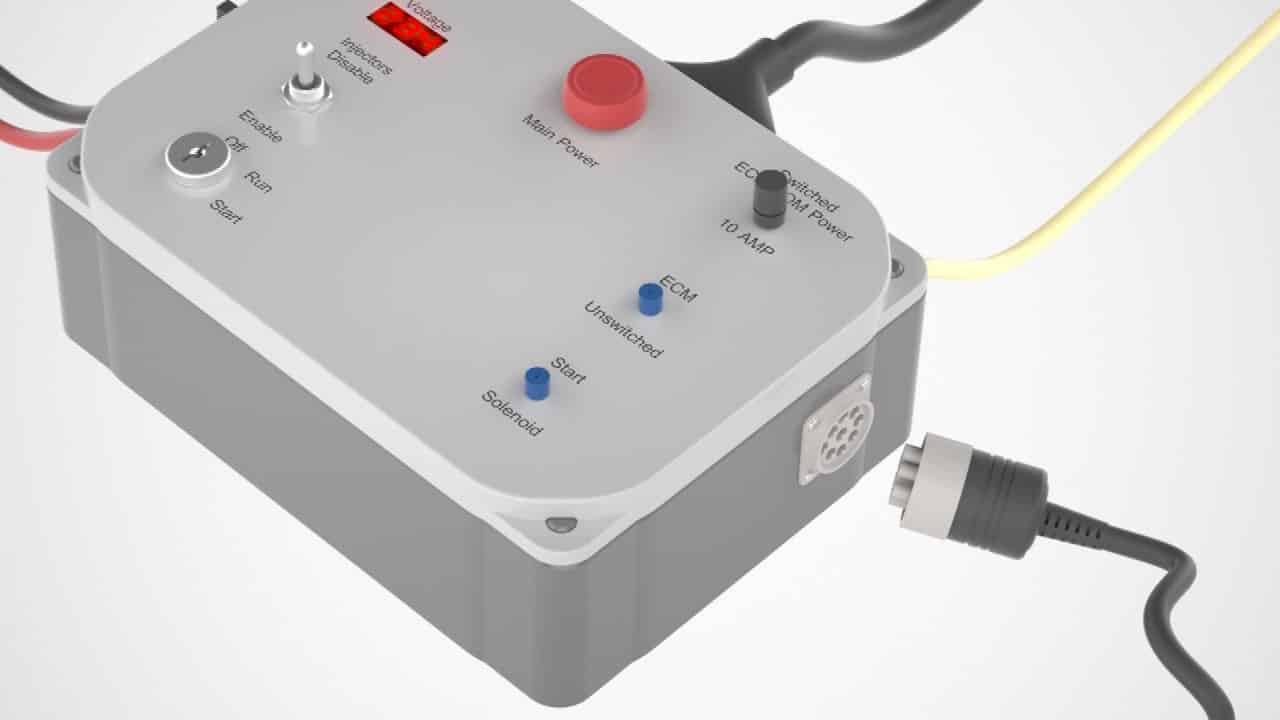 An electrical breakout box for use in testing engines and ECM modules prior to reassembly.