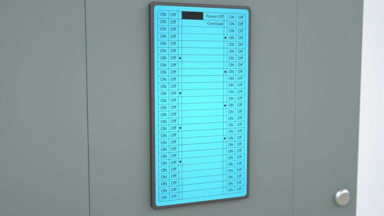 The invention features an electronic touch screen that displays the status of each circuit as to whether it is on, off, or tripped. A user will simply activate or deactivate a given fuse or circuit breaker by tapping the corresponding image on the touch screen. The case is both childproof and fireproof. It will keep a user from being exposed to any potential surfaces or components that could be energized or pose an arcing hazard. Additionally, any faults that could happen inside the panel are contained and do not pose an explosion hazard to those who may be located nearby.