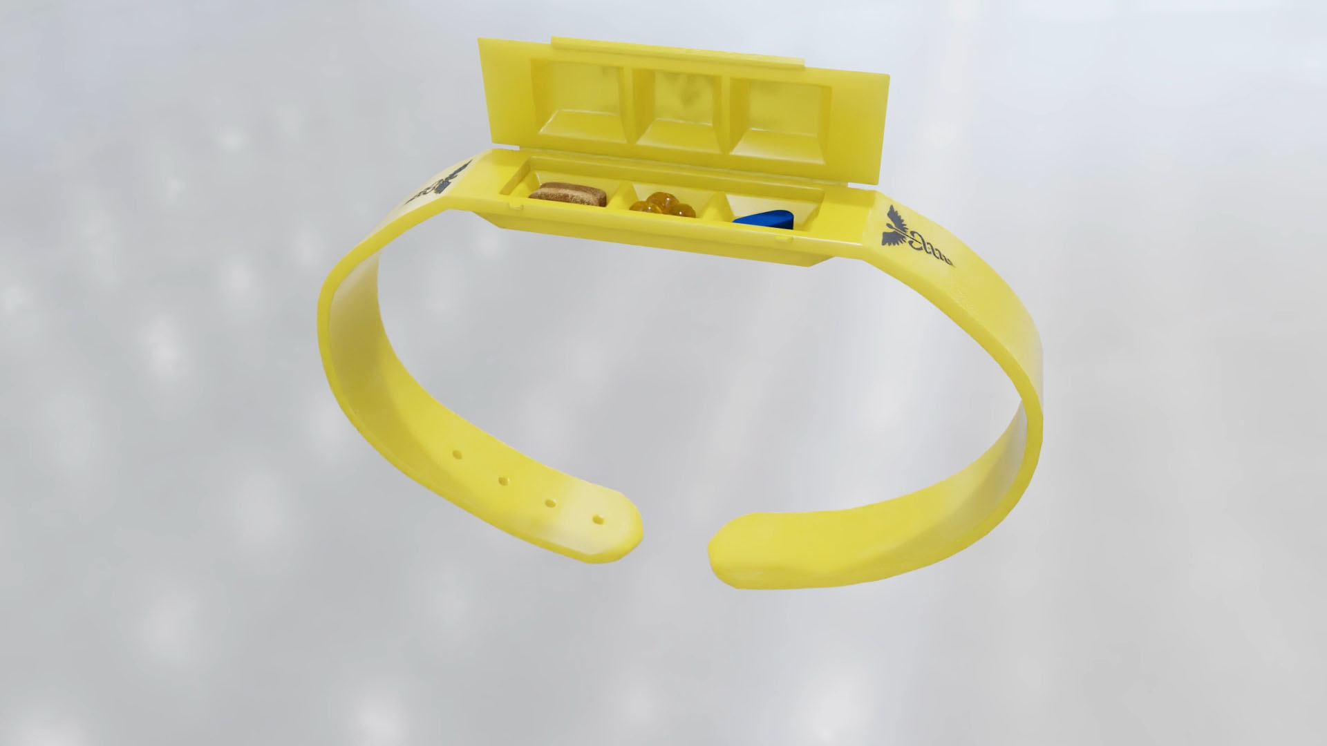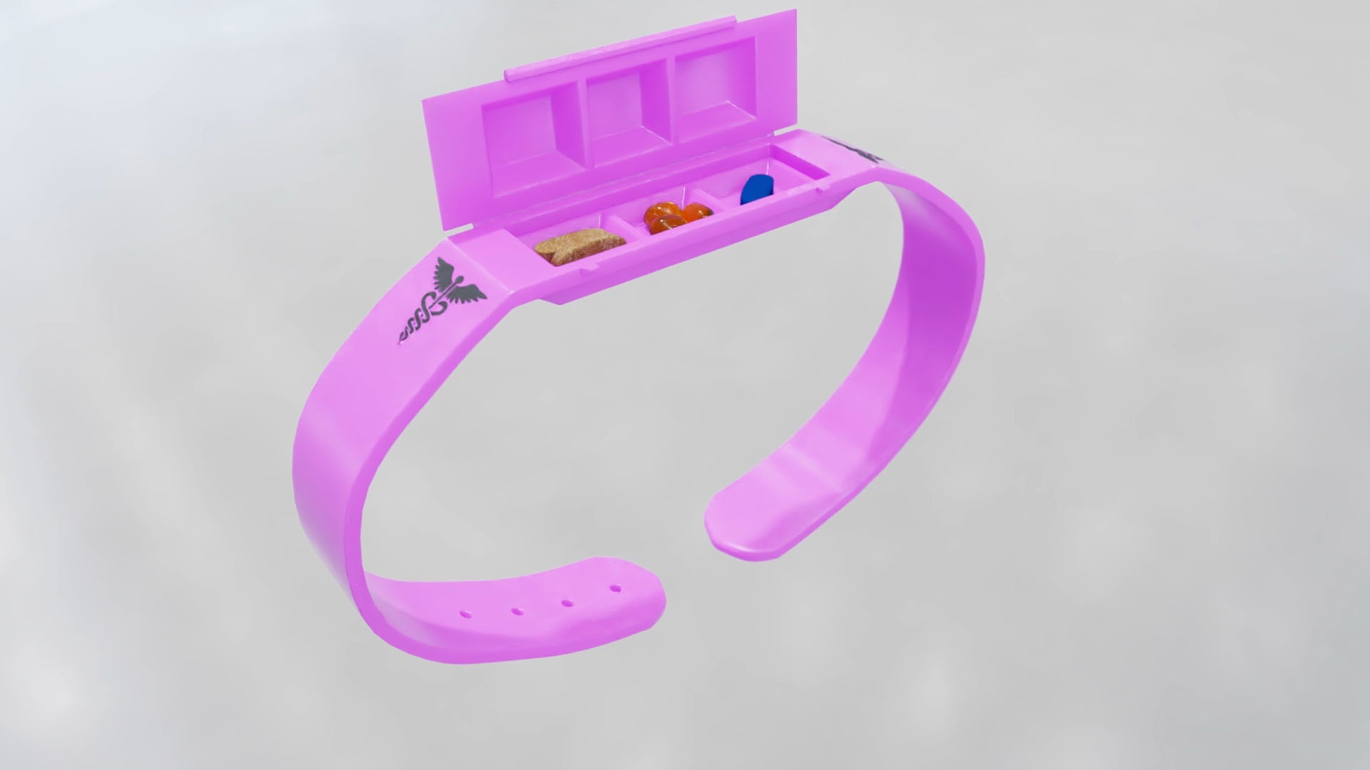 A new bracelet with multiple compartments for carrying different selections of medicine or vitamins.