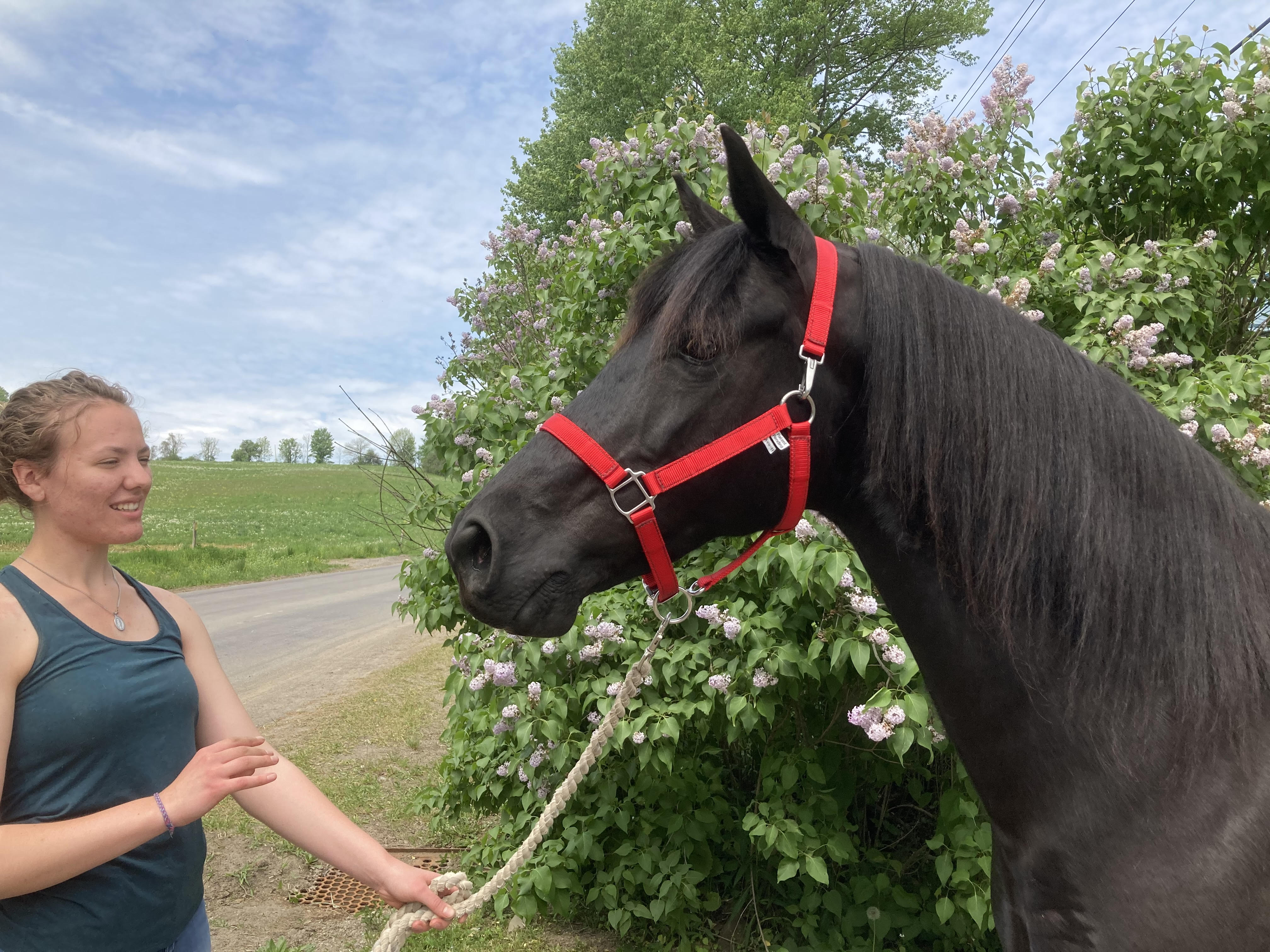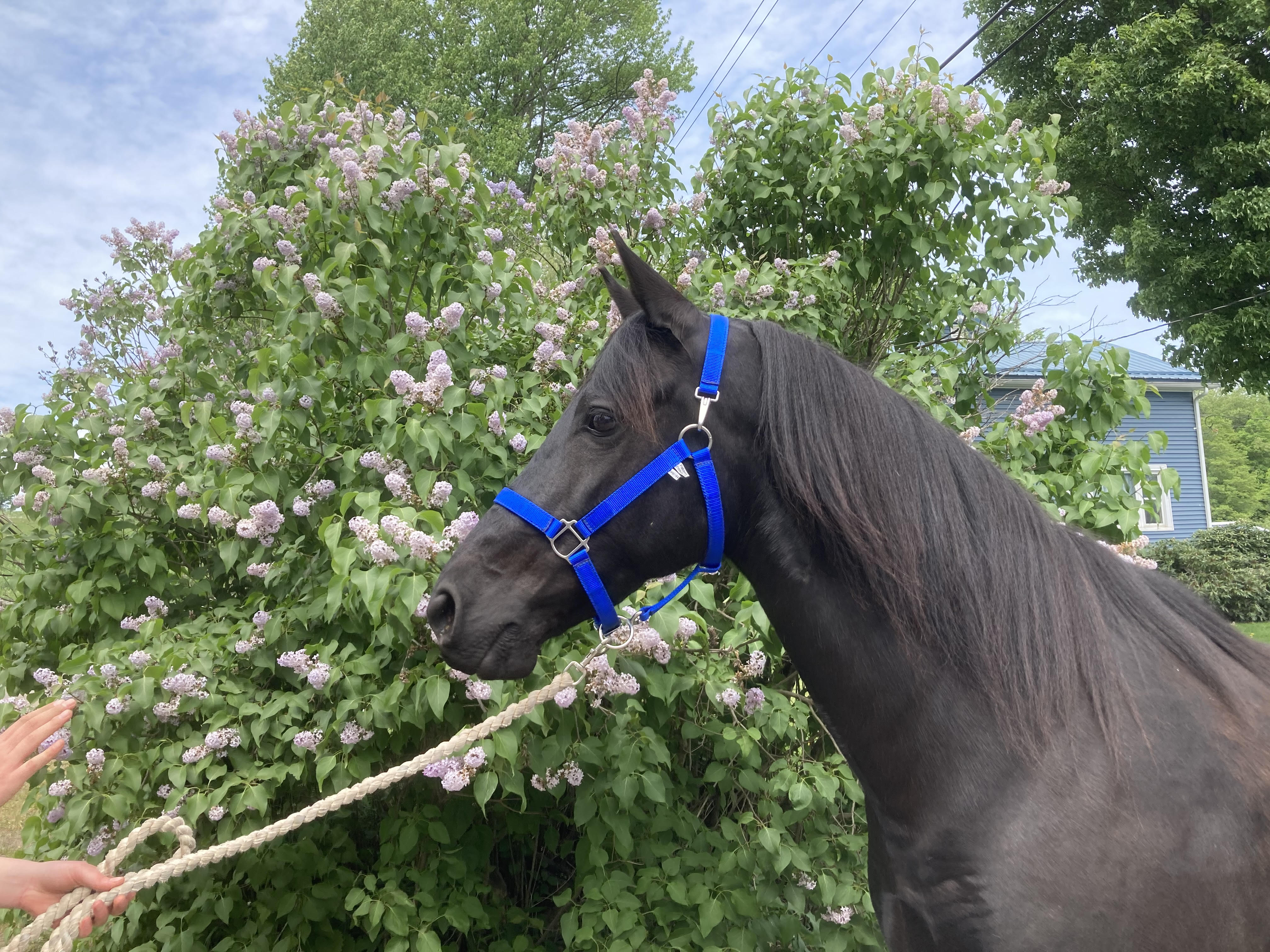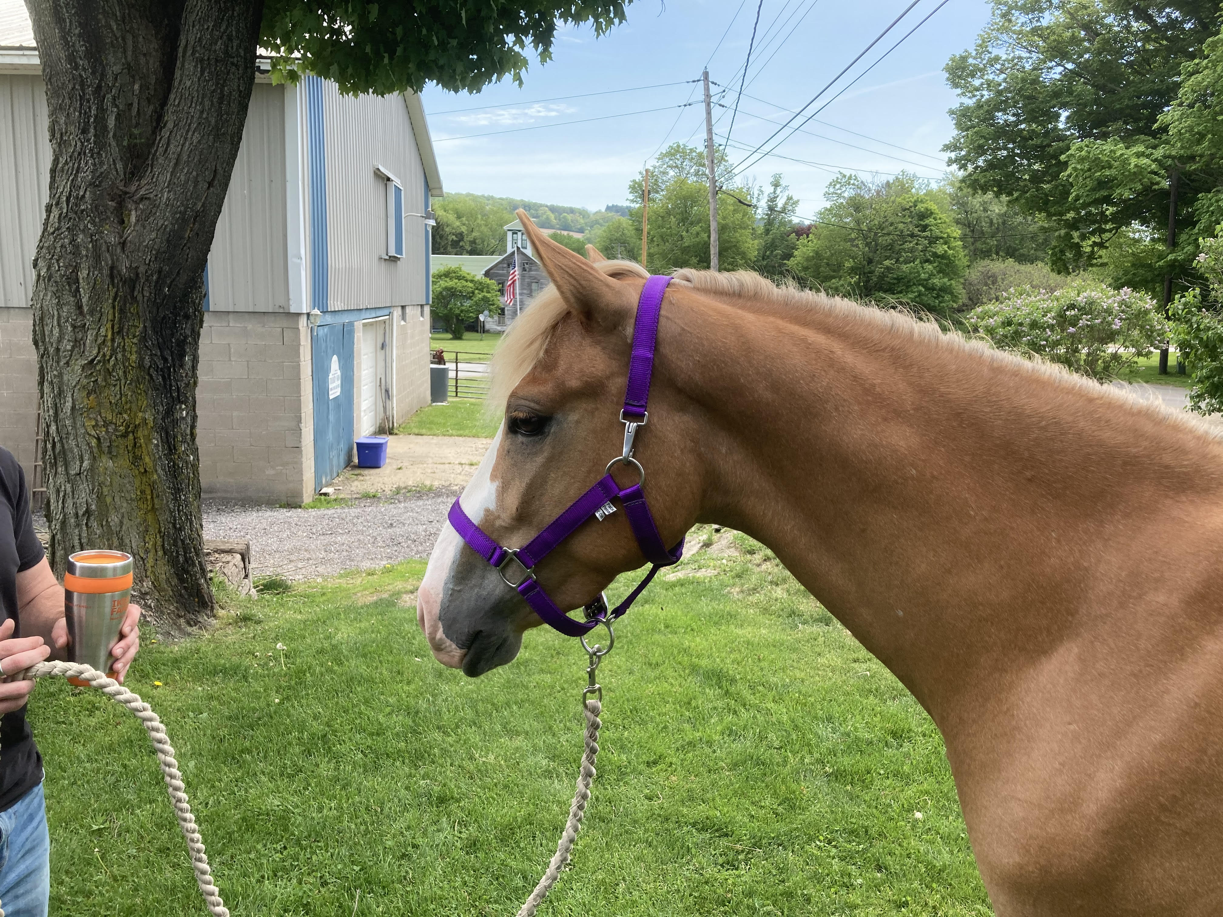 These halters are great on my friend’s pair of mini horses. They can be easily hooked around their necks when we are bridling them to harness. Plus, they look very cute in them!