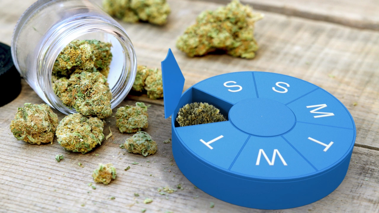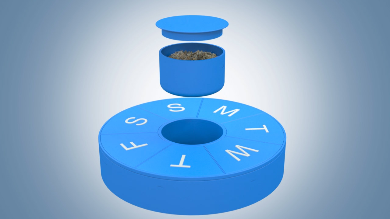 The invention features seven compartments that are specially labeled for each day of the week. At the beginning of the week, you will simply split your cannabis reserve into sevenths and load each compartment. You will then know exactly how much you have available per day. Not only will this help you ration your weekly reserve, it will keep you organized, and save you money! The case uses a non-stick and easy to clean material on the inside. Various sizes are available for different prescription amounts. A pop-out compartment can be used on-the-go.