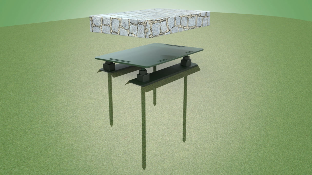 The invention utilizes a series of four threaded metal spikes that are attached to a metal plate. The plate is then driven into the ground with the longer spikes used for the lower elevation. A second plate is then secured to the first using nuts and hill grade adapters to create a flat and level surface. A top weatherproof cover with a metal core is then simply snapped over the top plate. The top cover will be available in natural styles such as stone, brick, or wood. Each cover will have built-in drainage channels and will be non-slip for a users safety. Should future landscaping renovations require it, the steps will be easy to remove and relocate.